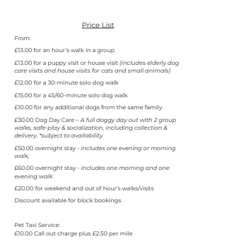 Standard Dog Walking